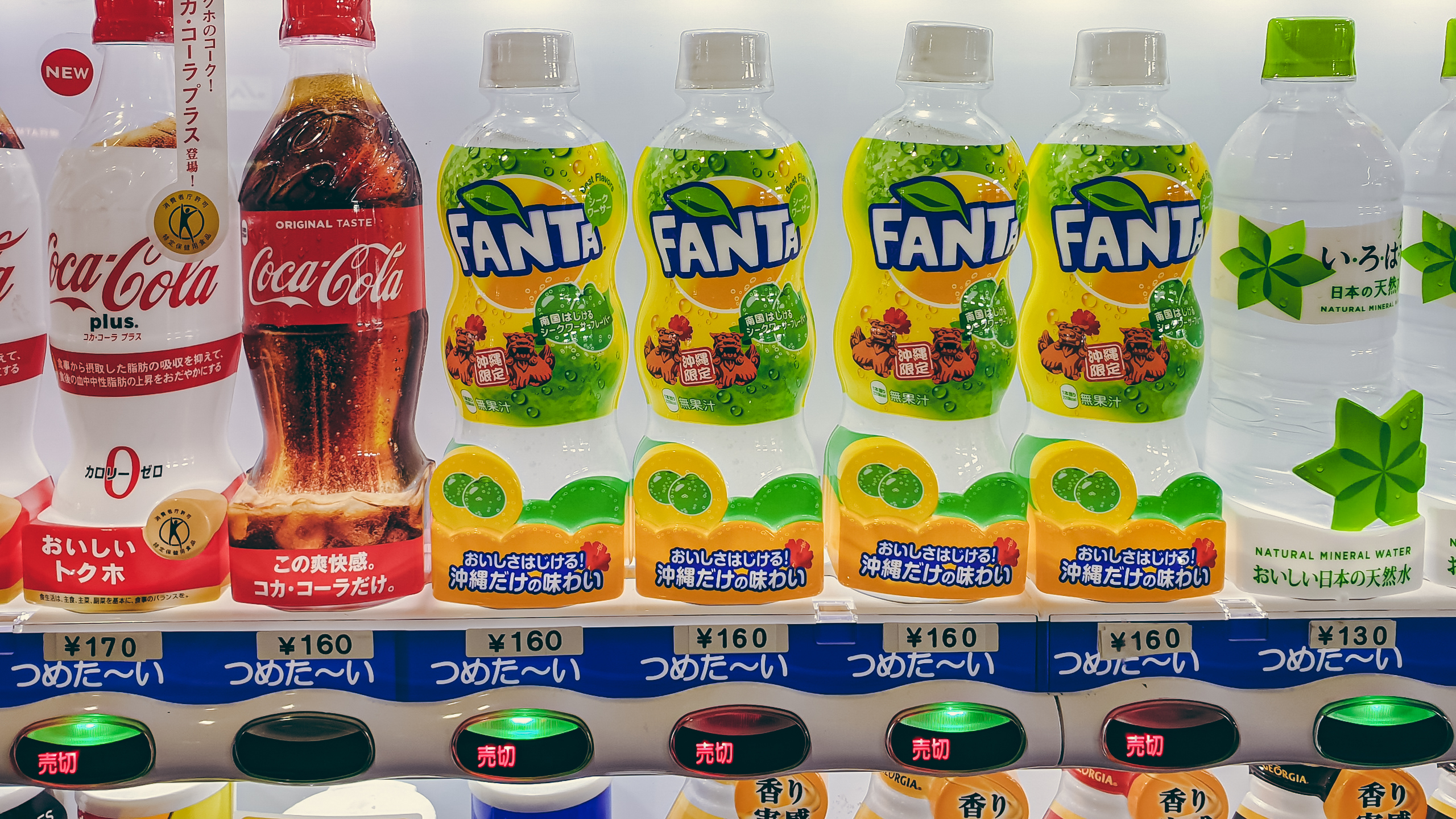 환타 오키나와 한정 맛인 시쿠와사(シークワーサー)맛이 자판기에 있다