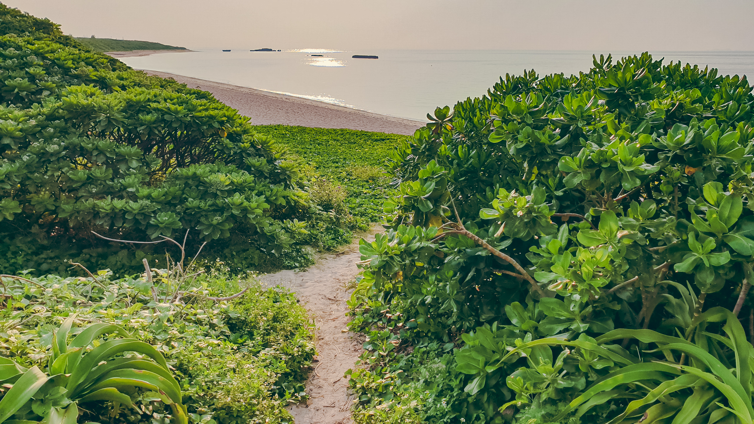 자전거를 적당한데 세워두고 이런 길을 지나 해변으로 내려간다