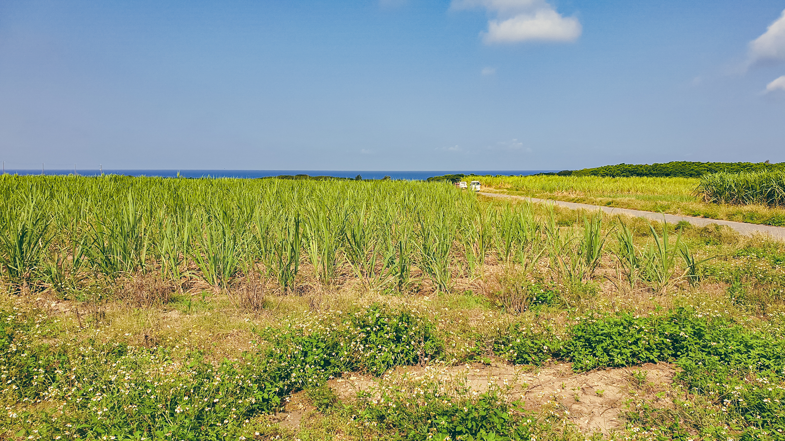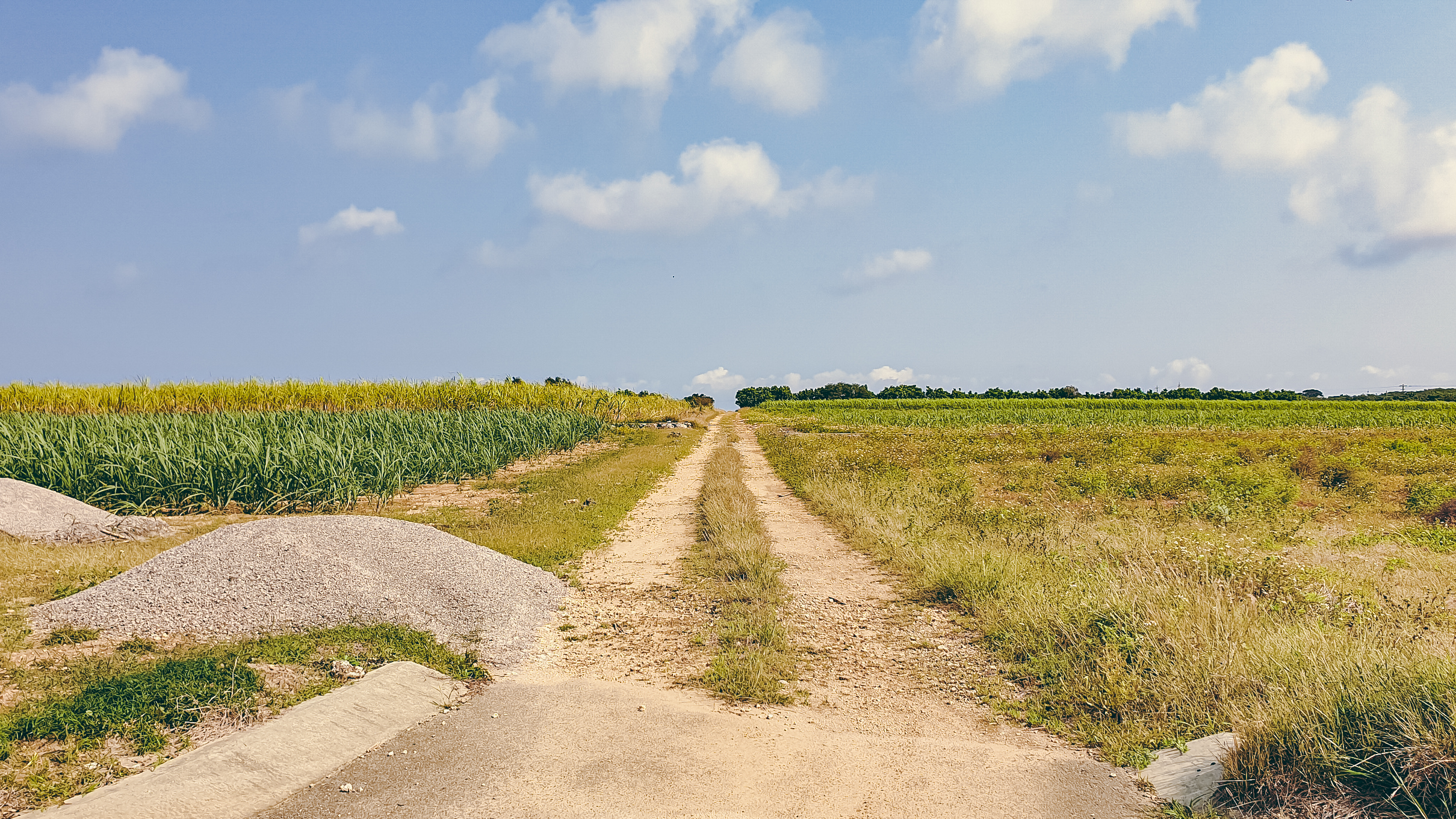 농경지 사이로 곧게 뻗은 비포장 도로