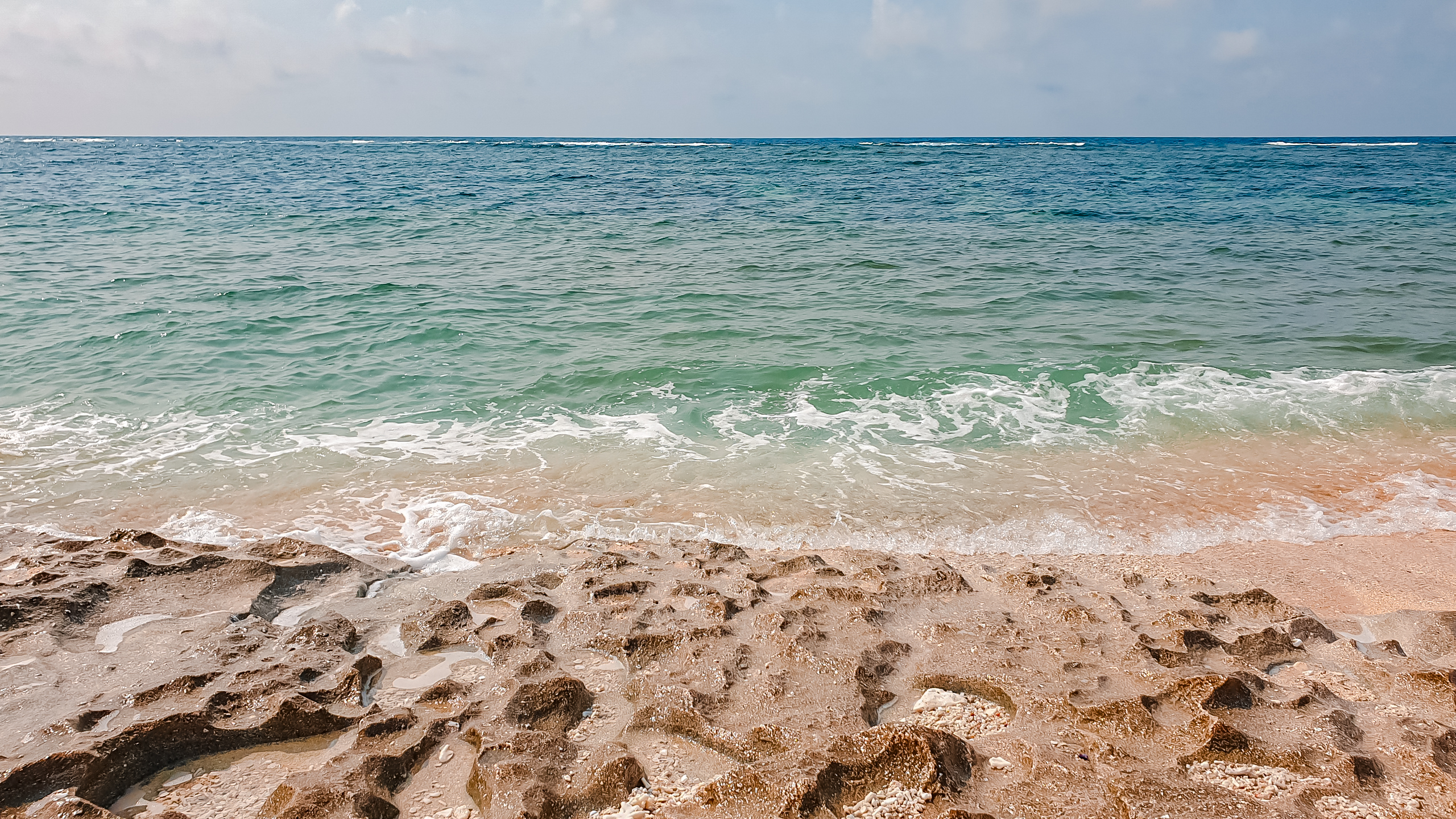 바다 앞에 있는 바위가 계속 파도를 맞고 바닷물이 고여있어서 그런지 여기저기 패여있다